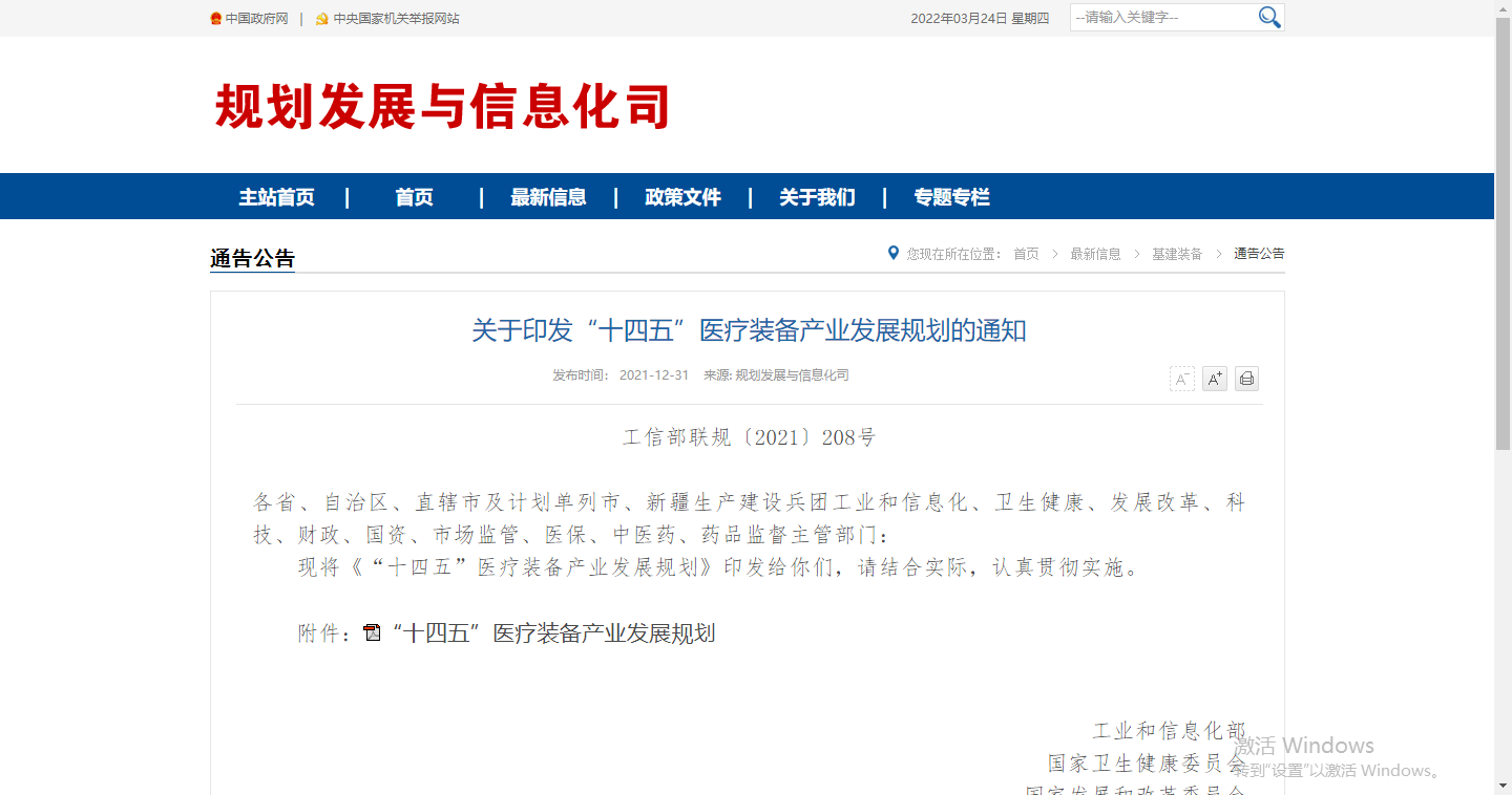 关于印发“十四五”医疗装备产业发展规划的通知