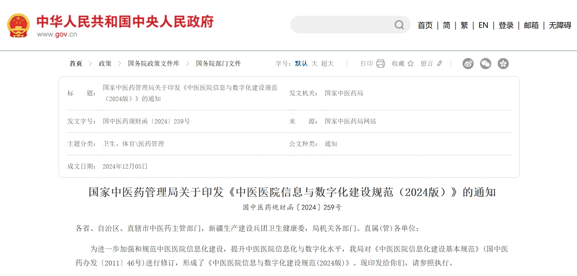在科技飞速发展的当下,数字化浪潮席卷各个领域,医疗行业也不例外。中医药作为我国传统医学的瑰宝,正迎来信息与数字化转型的关键时期。国家中医药管理局印发的《中医医院信息与数字化建设规范(2024 版)》,为中医医院的现代化发展注入了新动力,指明了前行方向。