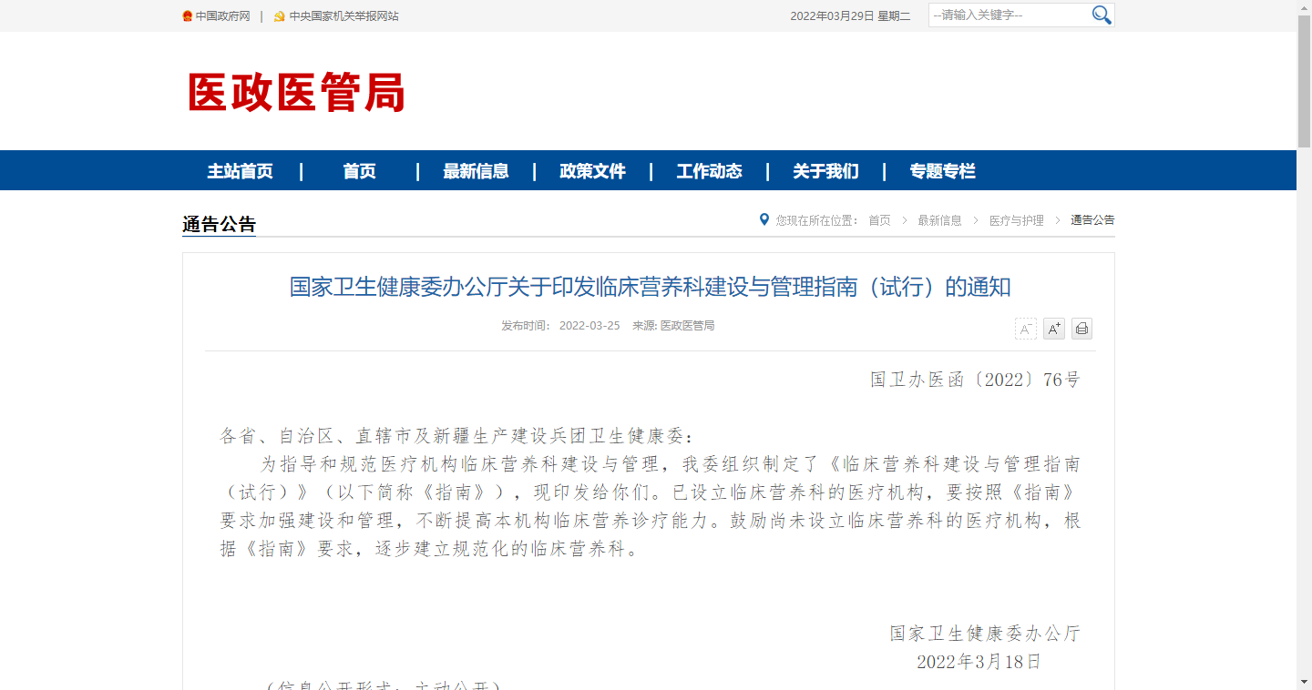 智慧医疗正在加速走进人们的生活中。为指导和规范医疗机构临床营养科建设与管理,提高智慧医疗临床营养诊疗能力和服务水平,国家卫生健康委组织起草了《临床营养科建设与管理指南(试行)》(以下简称《指南》)。