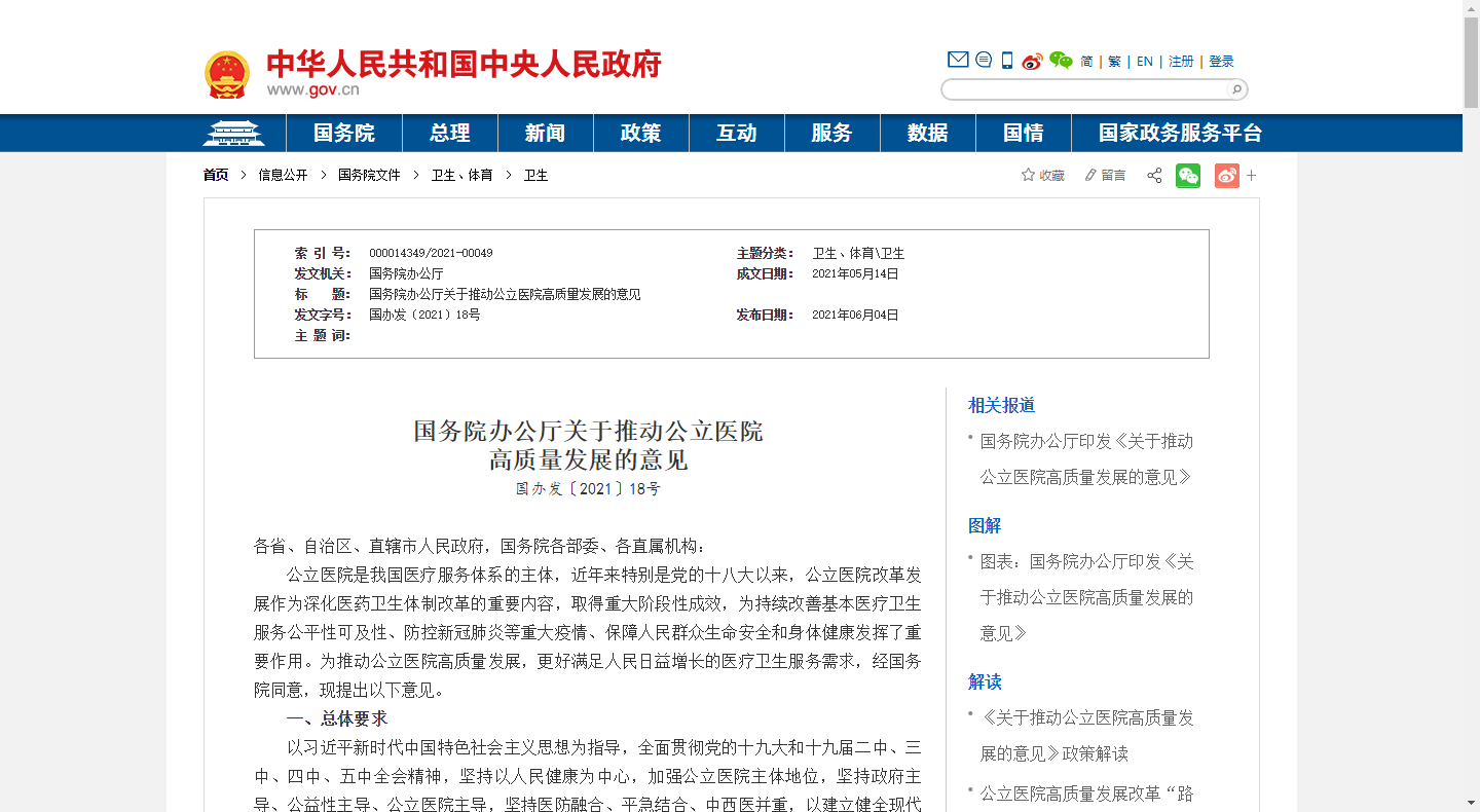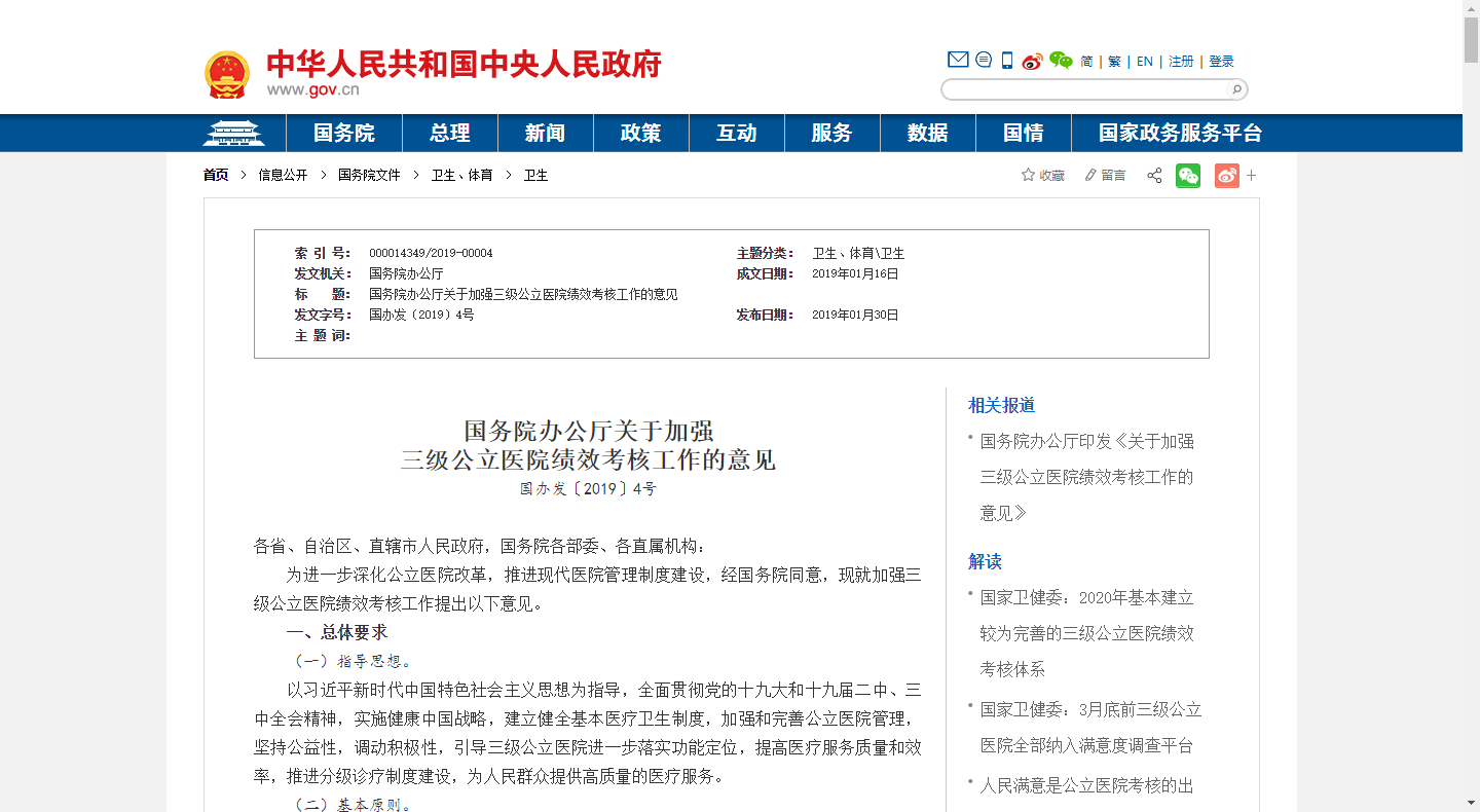为进一步深化公立医院改革,推进现代医院管理制度建设,经国务院同意,现就加强三级公立医院绩效考核工作提出以下意见。
