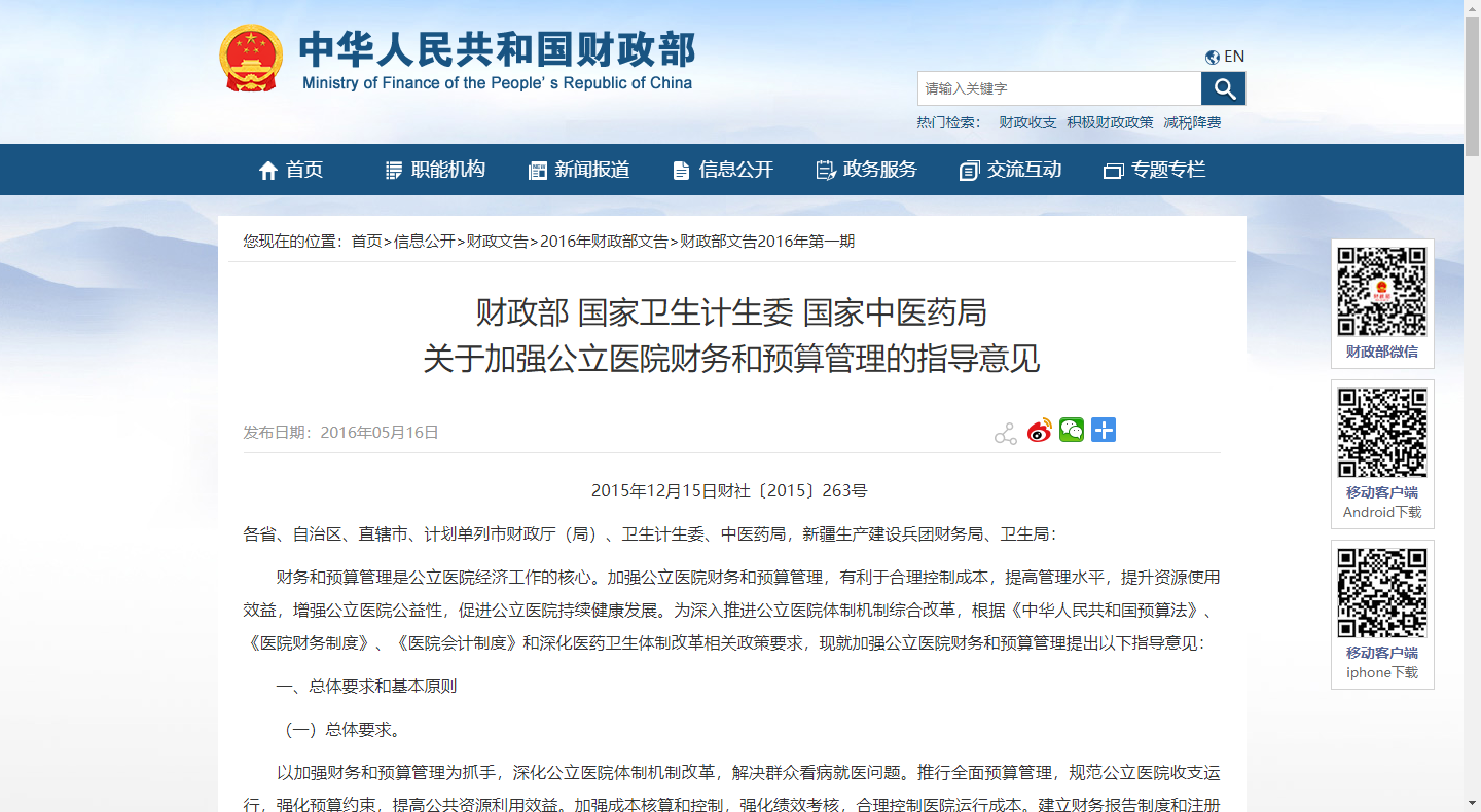 财务和预算管理是公立医院经济工作的核心。加强公立医院财务和预算管理,有利于合理控制成本,提高管理水平,提升资源使用效益,增强公立医院公益性,促进公立医院持续健康发展。