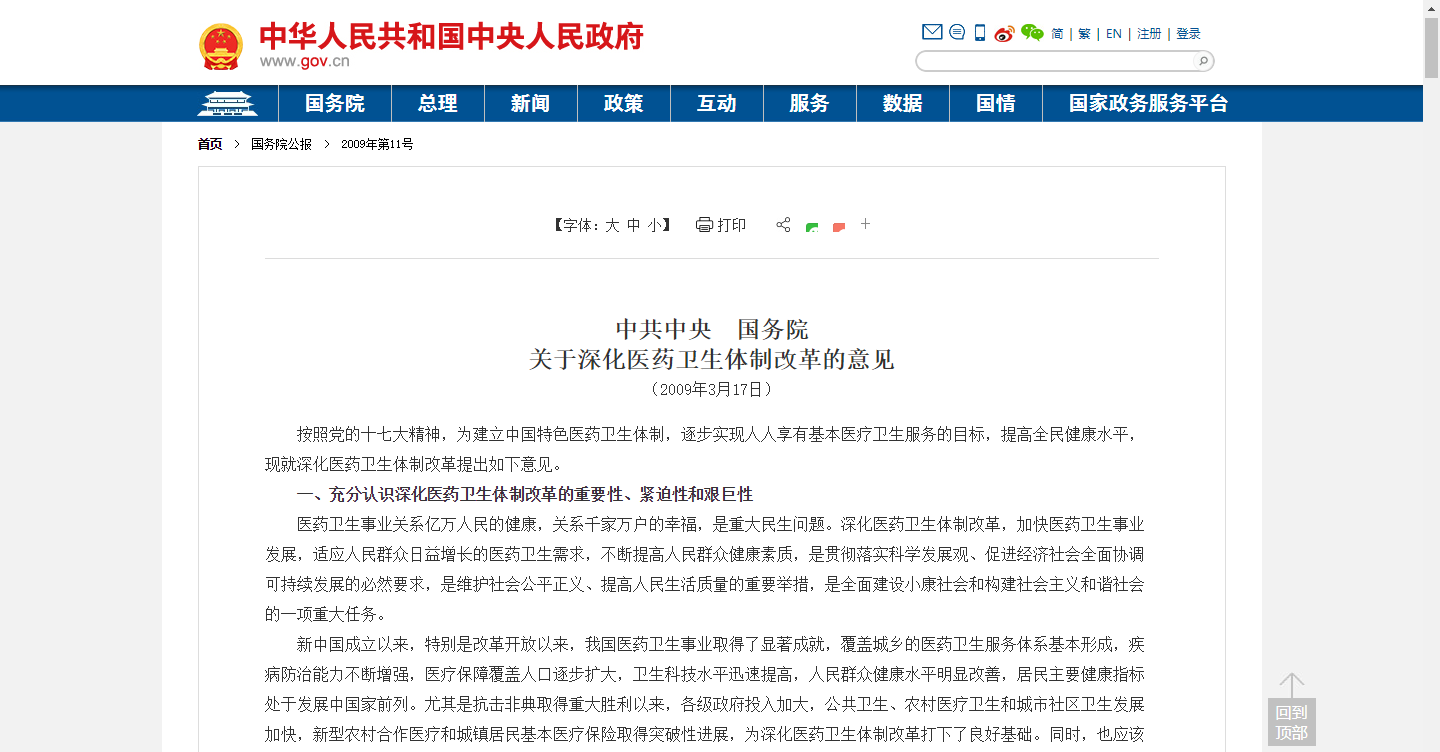 深化医药卫生体制改革是贯彻落实科学发展观、加快转变经济发展方式的重大实践,是建设现代国家、保障和改善民生、促进社会公平正义的重要举措,是贯穿经济社会领域的一场综合改革。