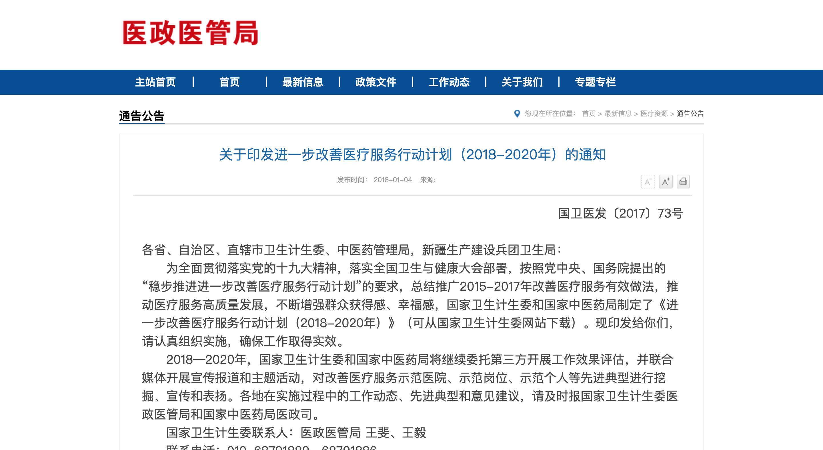 贯彻落实国家卫生计生委进一步改善医疗服务行动计划,做好改善医疗服务行动计划工作。