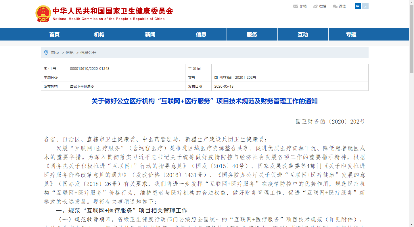 发展“互联网+医疗服务”(含远程医疗)是推进区域医疗资源整合共享、促进优质医疗资源下沉、降低患者就医成本的重要举措。