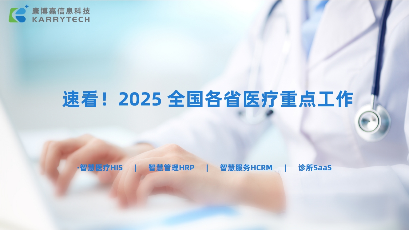 2024年底,2025年全国卫生健康工作会议于北京成功召开,为当年全国医疗卫生领域的工作指明了方向。自2025年1月起,各省积极响应,纷纷召开卫生健康工作会议,依据国家总体部署,结合本省实际情况,进一步细化落实一系列重点工作。从整体趋势来看,各省医疗卫生工作重点主要聚焦于深化医改、提升基层医疗服务能力以及加强公共卫生体系建设这三大关键方面。