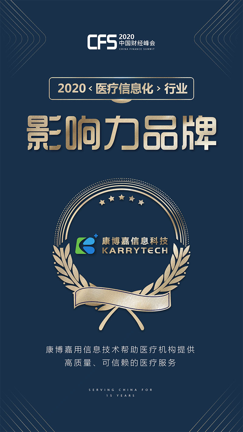 本次奖项由CFS第九届中国财经峰会组委会发起评选,共设置23类大奖,汇集5G、人工智能、智慧医疗、数字经济等多个领域,用来表彰在各个领域的先进企业和年度影响力精英人物,康博嘉凭借为医疗机构带来的智慧医疗信息化解决方案成功突围,与百世集团、中智集团、汇美集团等多家知名企业荣登各大行业榜单。
