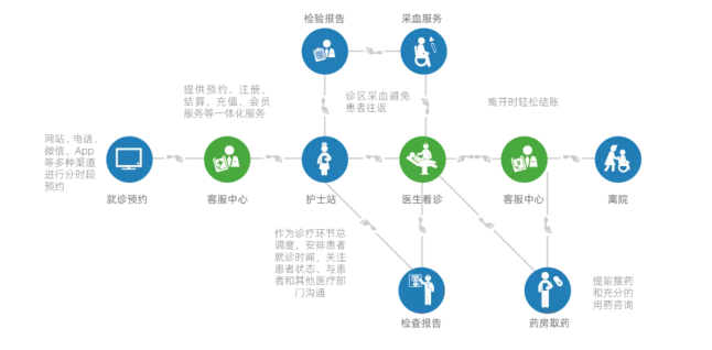 通过康博嘉研发的医院信息系统,可以将传统的就诊模式转变为更高效的先诊疗后付费的就诊流程,即通过网站、电话、微信、App等多种渠道进行分时段预约,采取实时信息通知、提前摆药、条码应用、互联网支付等手段,使诊疗流程更顺畅、更合理。