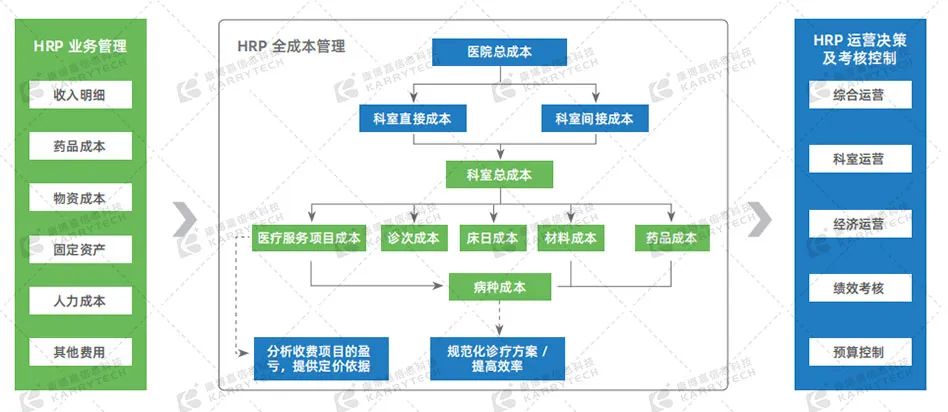 康博嘉HRP智慧管理解决方案,能够通过分析科室成本构成实现总成本控制,并支持病种成本核算优化诊疗方案、制定合理临床路径。