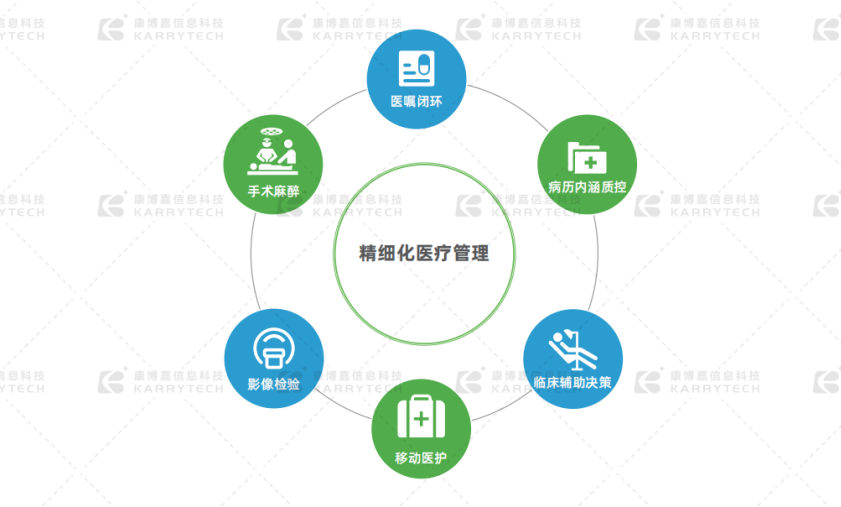 为适应医疗机构的差异化诊疗流程,康博嘉 HIS 搭建了完整医疗质控管理体系,严格规范医嘱、电子病历、临床路径、移动医护、影像检验、手术麻醉全流程,推动医疗机构从“被动式”末端质控,走向“主动式”过程质控,实现所有环节可追溯的精细化管理。
