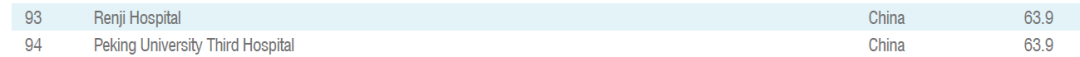 在本次榜单中,中国有4家医院入选,分别是:上海交通大学医学院附属仁济医院、北京大学第三医院、浙江大学医学院附属第一医院和河北医科大学第三医院。