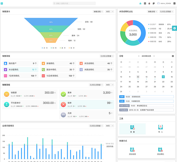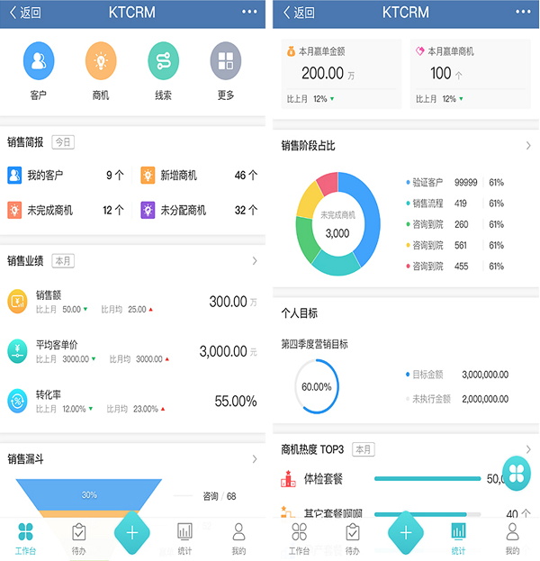 在销售维度上,支持从初次咨询到销售完成的全流程管理,可以对商机自定义多个销售阶段,记录商机跟进过程中的动态,生成销售漏斗,能够及时发现销售过程中出现的问题,保障销售目标的达成。同时,康博嘉医院CRM系统还可实现自动化提醒,避免人工遗忘,对每一条销售线索都能精准监控。