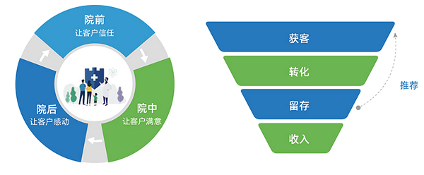 现代民营医疗机构通过成立专门的客户服务及运营中心,建立起属于自己的私域流量,使医院的战略中心从关注“医疗服务”向“关注客户”转变,通过医院CRM平台对客户需求挖掘和精细化管理,提供具有针对性的医疗服务,可以长期有效的提高医院的就诊量。