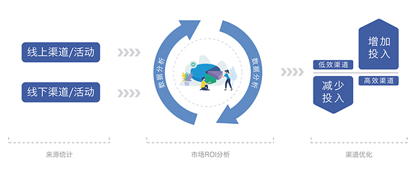 康博嘉医院CRM支持多样化获客方式,可以通过广告投放、市场活动、合作渠道等其他销售拓客方式获取并记录客户来源,进行分类统计。通过可自定义配置的营销漏斗,依据数据实时、全面监控营销结果,判断渠道是否有效,帮助管理者进行决策优化:高效渠道增加投入,低效渠道减少投入。