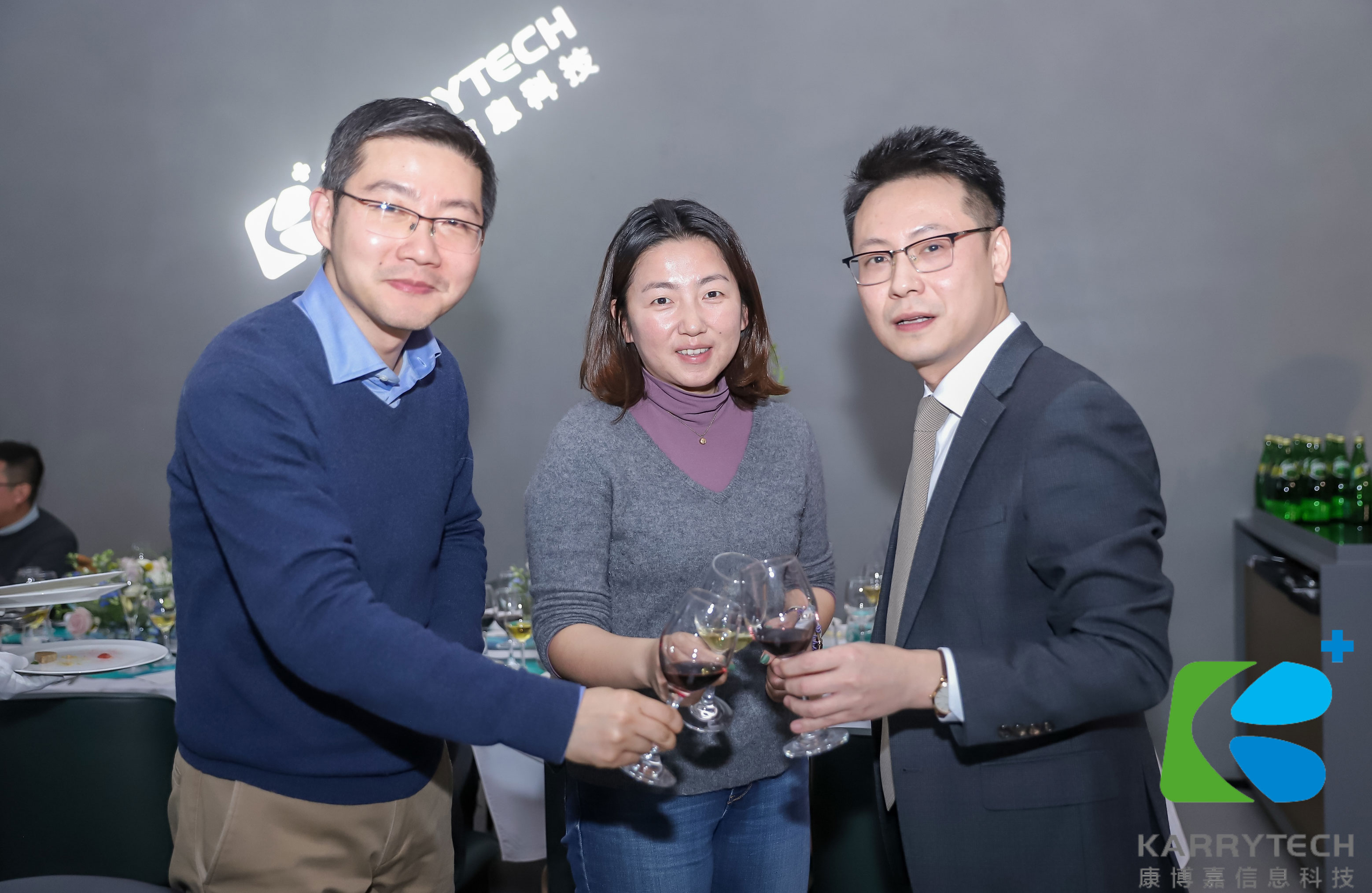在晚宴现场的抽奖环节,康博嘉创始人兼CEO祖凯先生、康博嘉联合创始人钟凯先生、苗森先生、丁锐先生分别为获奖嘉宾呈上心意。现场气氛和乐融融,大家频频举杯,举杯这个动作好似有神奇的魔力,可以定格住当晚所有的美好和温馨。
