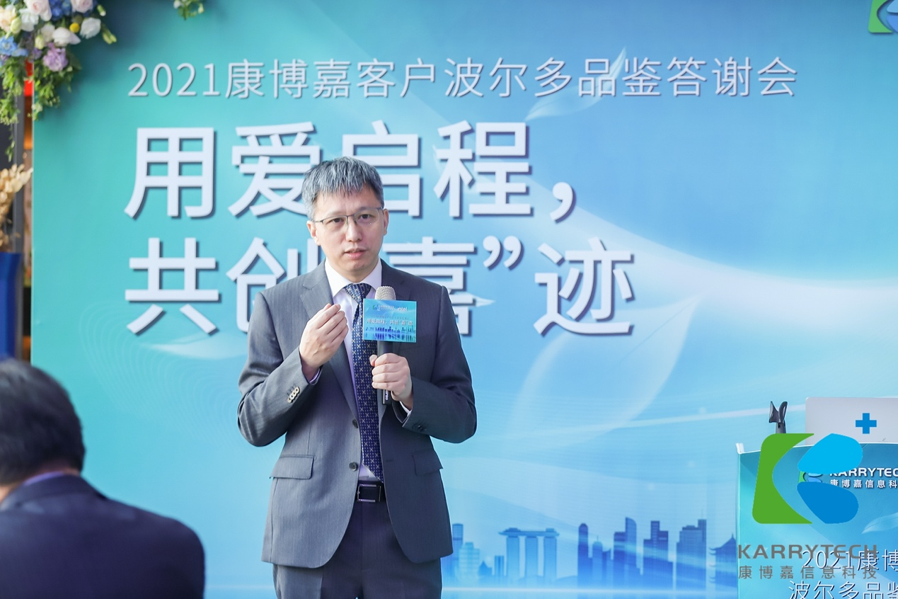 康博嘉联合创始人陈智先生紧接祖总,为各位到场嘉宾回顾了康博嘉项目在2021年的关键时刻:百汇医疗集团HIS上线,佛山复星禅诚医院HRP运行、哥伦比亚医疗集团嘉兴凯宜医院开业准备、智汇未来HIS/HRP/HCRM整体解决方案的有序推进、和上海星晨儿童医院及杭州贝瑞斯医疗集团的HCRM建设项目等。康博嘉与客户能够取得共同成功,不仅源于客户对医疗信息化的重视与决心,借用百汇医疗中国区销售和市场部副总裁梁亦女士的认可——“康博嘉总在客户提出需求之前,已为客户提供了洞察需求的解决方案。”