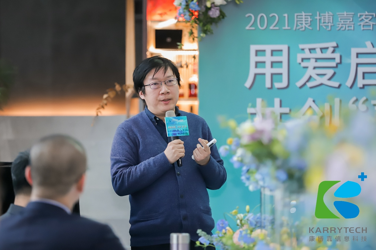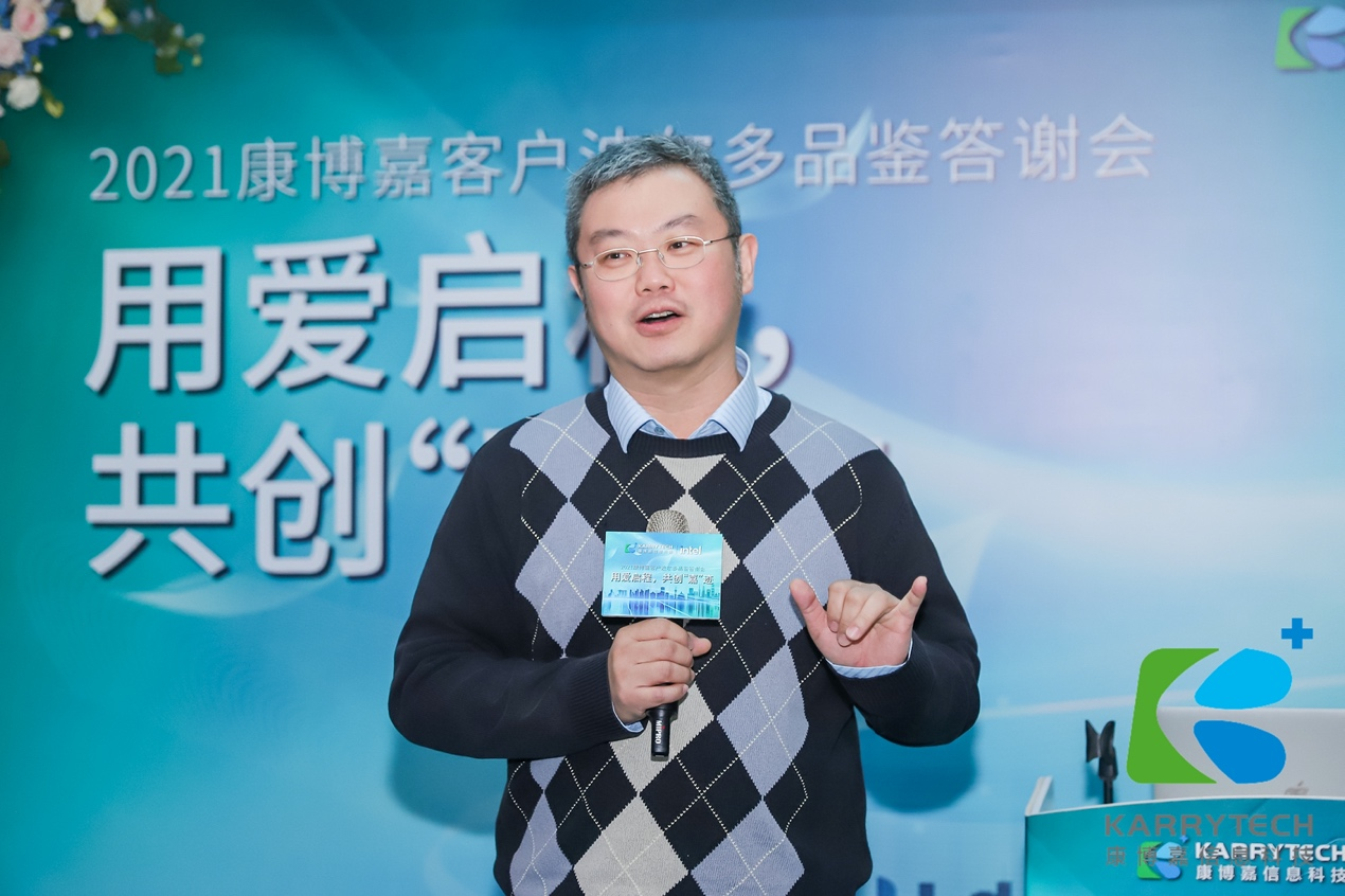 百汇医疗中国区信息技术部负责人黄仁智先生非常肯定康博嘉对于客户需求的充分沟通、理解与响应能力。黄总来自狮城新加坡,对中国文化很着迷,在分享中引用了很多中国典故及谚语,虽然发音很“特别”,但丝毫不影响台下嘉宾的兴致与理解。黄总尤其提到,2021年春节正是百汇项目上线的关键时刻,康博嘉团队没有减少一位人员,反而在每个医疗岗位都贴心地安排了值守工程师,黄总对此表达了高度的感谢,认为康博嘉可以持续超出客户预期,在多重复杂挑战下,仍实现卓越的交付。