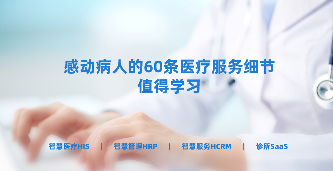 在医疗市场化不断加剧的背景下,医疗的服务属性被不断强化。细节服务其实很多医院/诊所都在做只是不够完善,下面小编给大家分享60条感动患者的服务小细节,很多时候,运用好医疗crm,再加上这些无微不至的温暖关怀,患者心里会感到很有温度,更能一定程度地缓解紧张的医患关系。