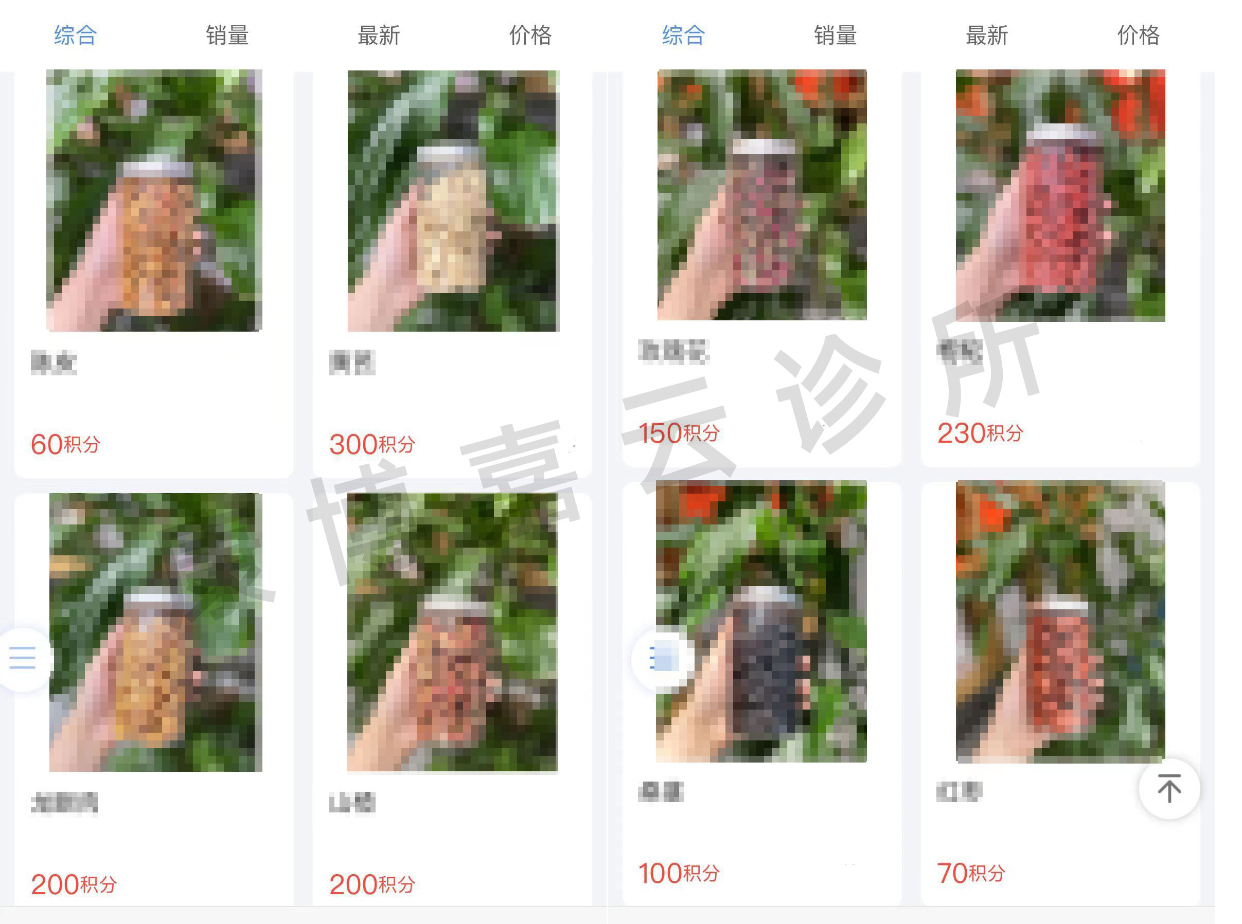 某家汇集了国家级/省级名老中医、知名三甲医院专家的综合型医馆,在这方面就很有心得。因为医馆的特色就是中医外治和中西医结合诊疗,所以在设置兑换产品时,选择了大量具有保健作用的中药材,比如理气健脾的陈皮、黄芪、枸杞等等。