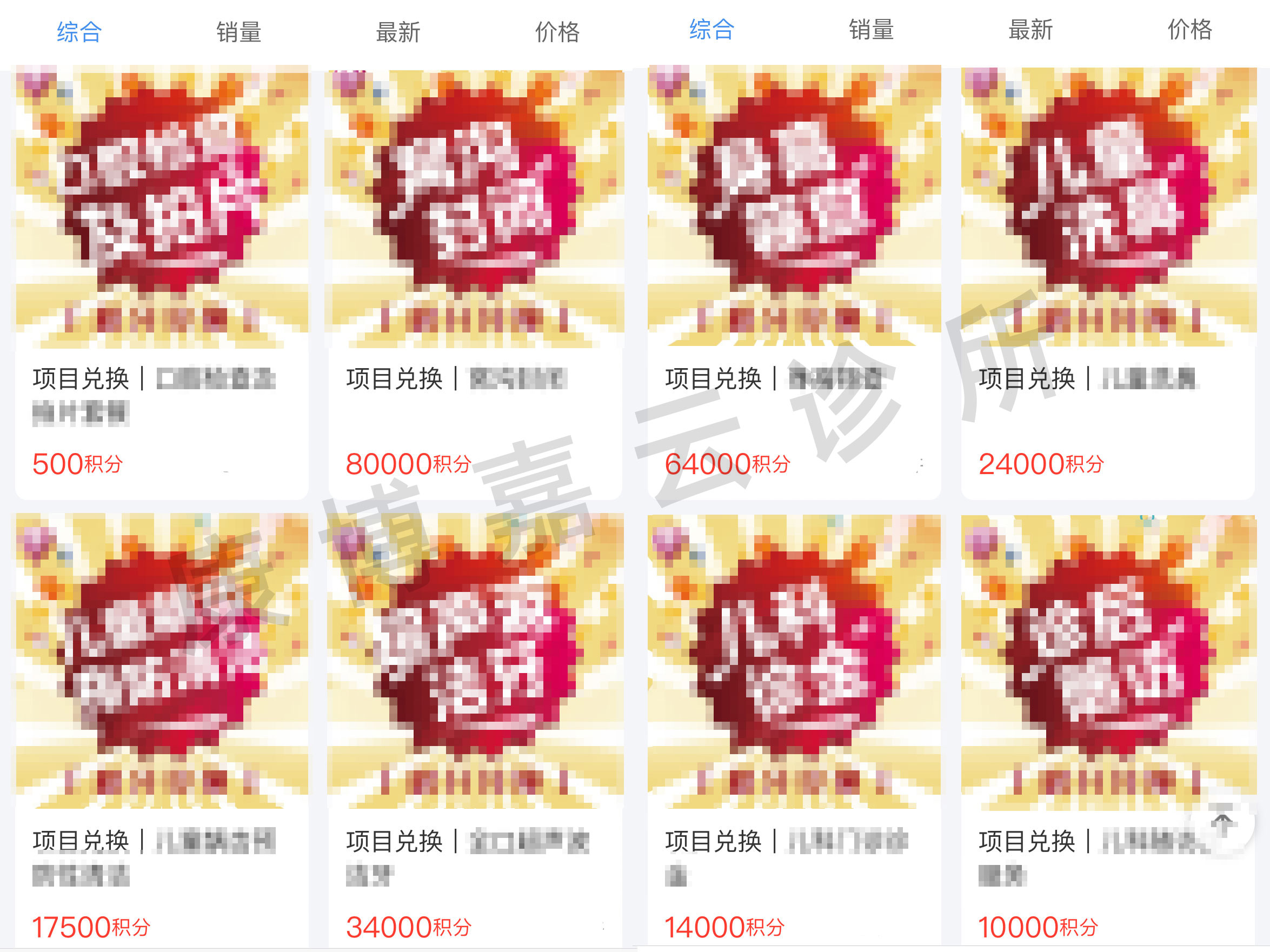 某业内知名的以儿科为特色的综合性医疗机构在设置积分商城产品时,就选择了口腔检查及拍片套餐、窝沟封闭、全口超声波洁牙等医疗服务,这样可以用可控成本内的免费项目吸引客户到店,也便于推进后续的产品售卖。