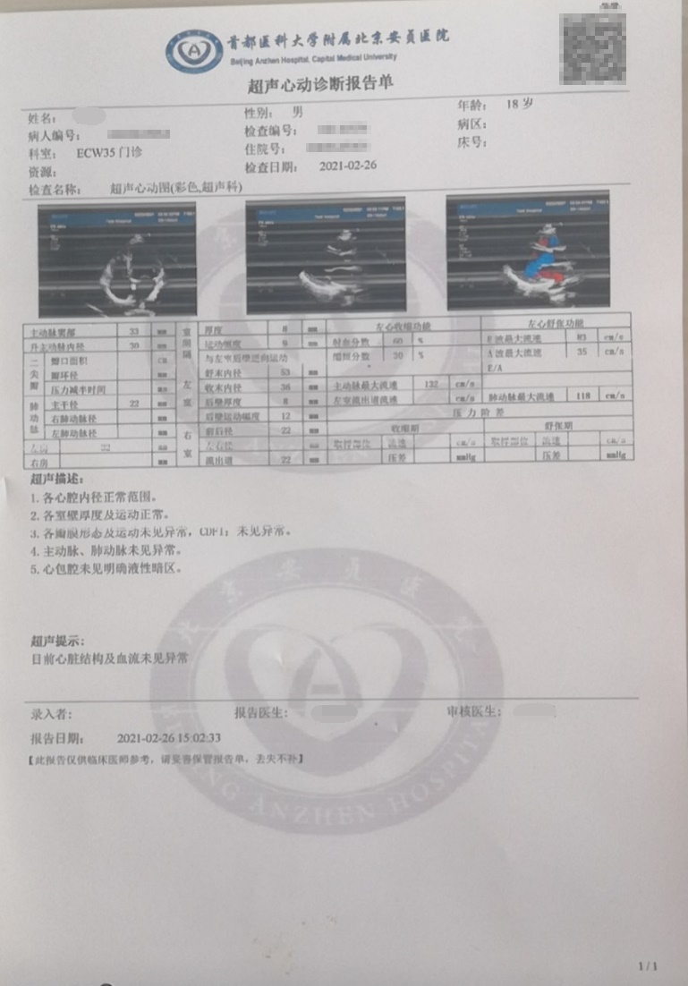 终于,功夫不负有心人,这些努力终于在2021年年初有了显著成效。经过李氏两代医者的精心治疗和患者及其家属的全力配合,目前,小北心脏结构和血流均为正常!也没有明显不适的症状!