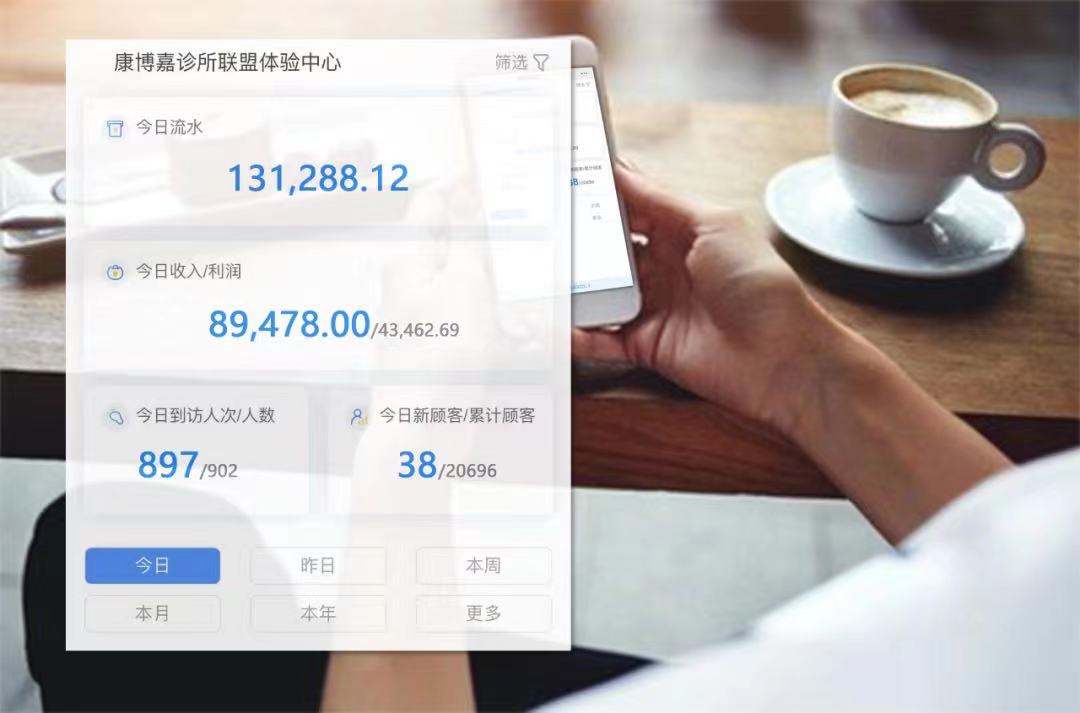 诊所管理者可在移动端利用自己日常的碎片化时间,快速掌握诊所各项核心数据,对诊所的经营情况做到心中有数。