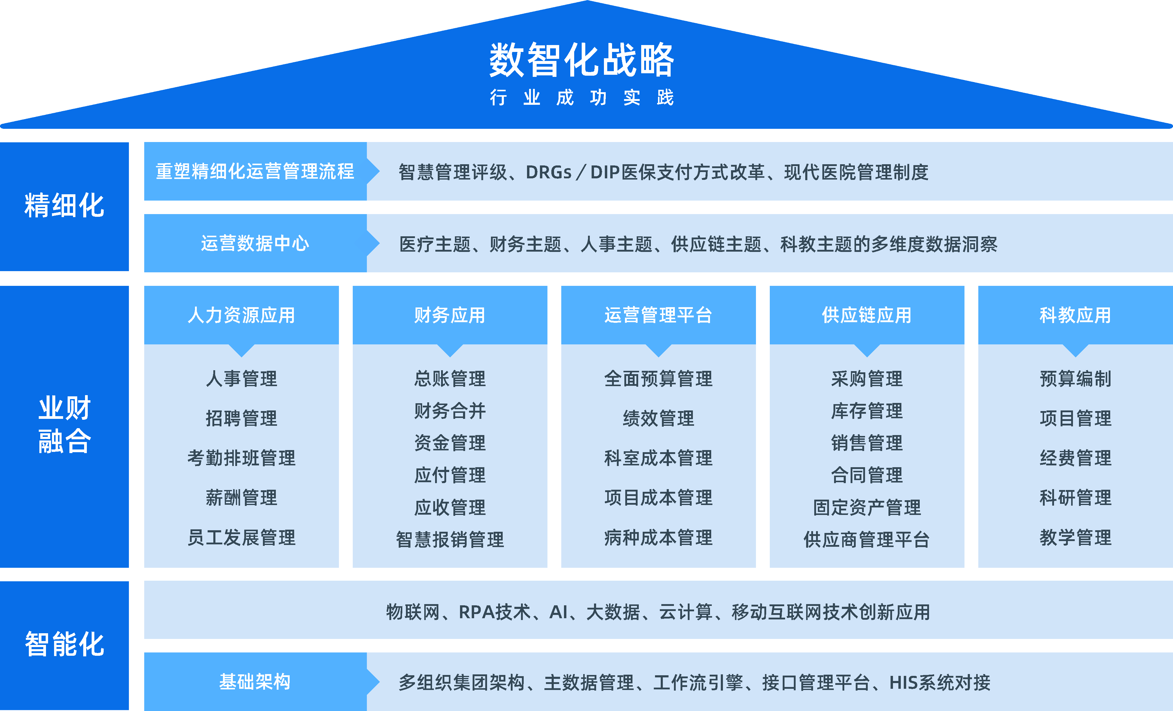 面对新医改深化、竞争加剧等外部改变,收入增速放缓而成本上升的压力,倒逼医院建立精益管理体系,通过全面的预算、成本、绩效管理开源节流。